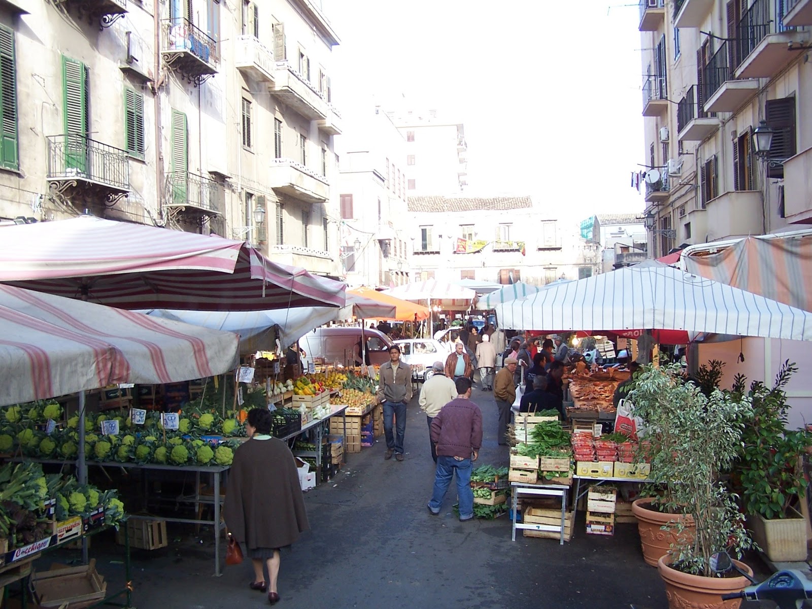 In the photo to the right, at the other end of this street you can see the bell tower of the Cathedral of Palermo. I really liked the streets of Palermo. Everywhere you went there were trucks of fruit and veggies stopped and they were selling out of the back of them. While we were on the bus, the tour guide told us as we set in a traffic jam that was being created by one of the trucks stopped in the street that the police make them move on when the see them stopped like that. But until that happens, they just stop where ever there is a good crowd and start selling.