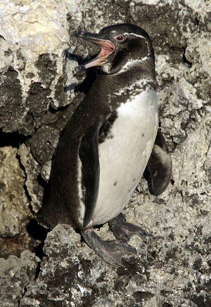For instance the Galapagos Penguin is the only penguin that lives above the equator in the wild. Everbody loves a penguin. How could you not want to protect that? The penguins stay primarily on one island, Fernandina and on the west coast of Isabela Island. Although they are also found in small numbers on three or four other islands in the chain. They stay with the Cromwell Currant during the day feeding on small schooling fish. Then they roost on land at night. The species is endangered with an estimated population of only 1,500.